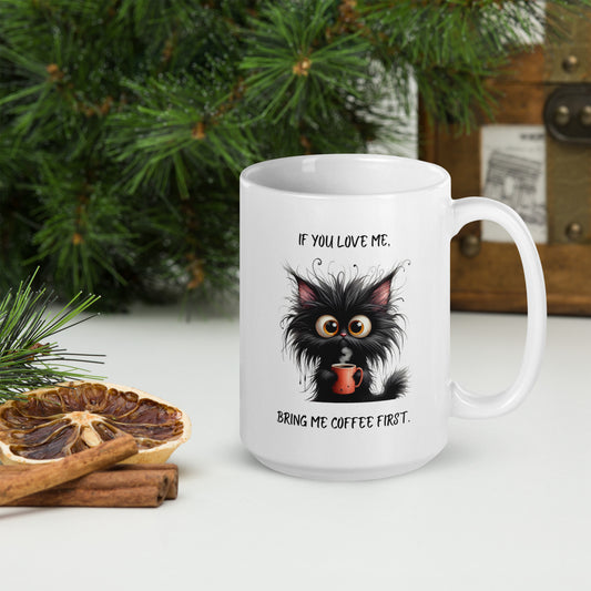 Adorable Black Cat Mug | Funny Morning Coffee Cup | Perfect Gift for Cat Moms & Caffeine Fans