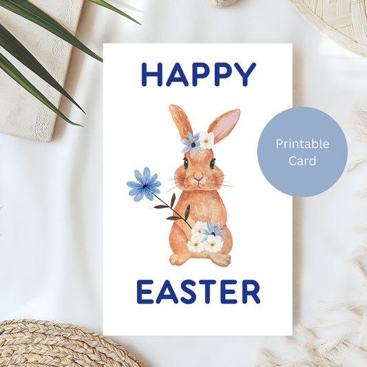 Blue Bunny Easter Card– Cute Card for Moms, Grandparents & Spring Baskets