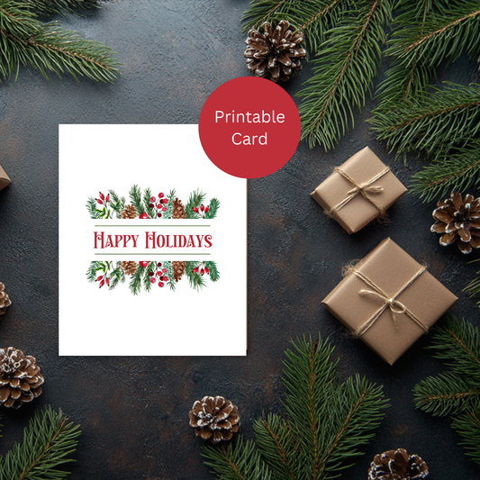 "Happy Holidays"-Printable Christmas Card - Pinecone Spray- Blank Interior