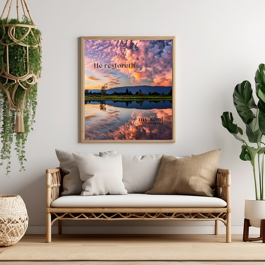 Bible Verse Wall Art-Psalms 23:3a KJV-He Restoreth my Soul-Digital Download
